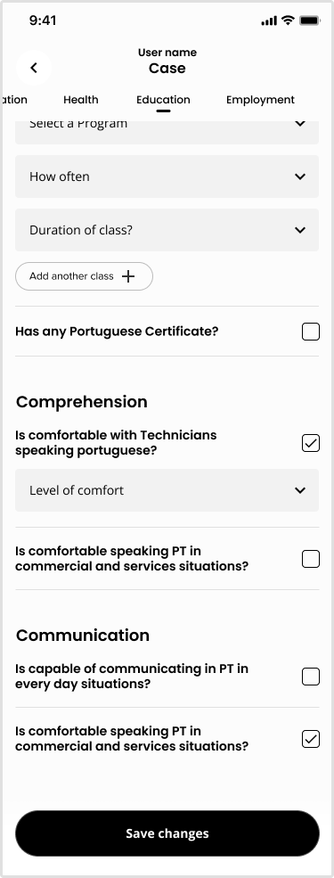 Both profiles were able to edit the profiles successfully, quickly finding the sections of the form the questions were in - COVID under Health and Language class under education.